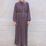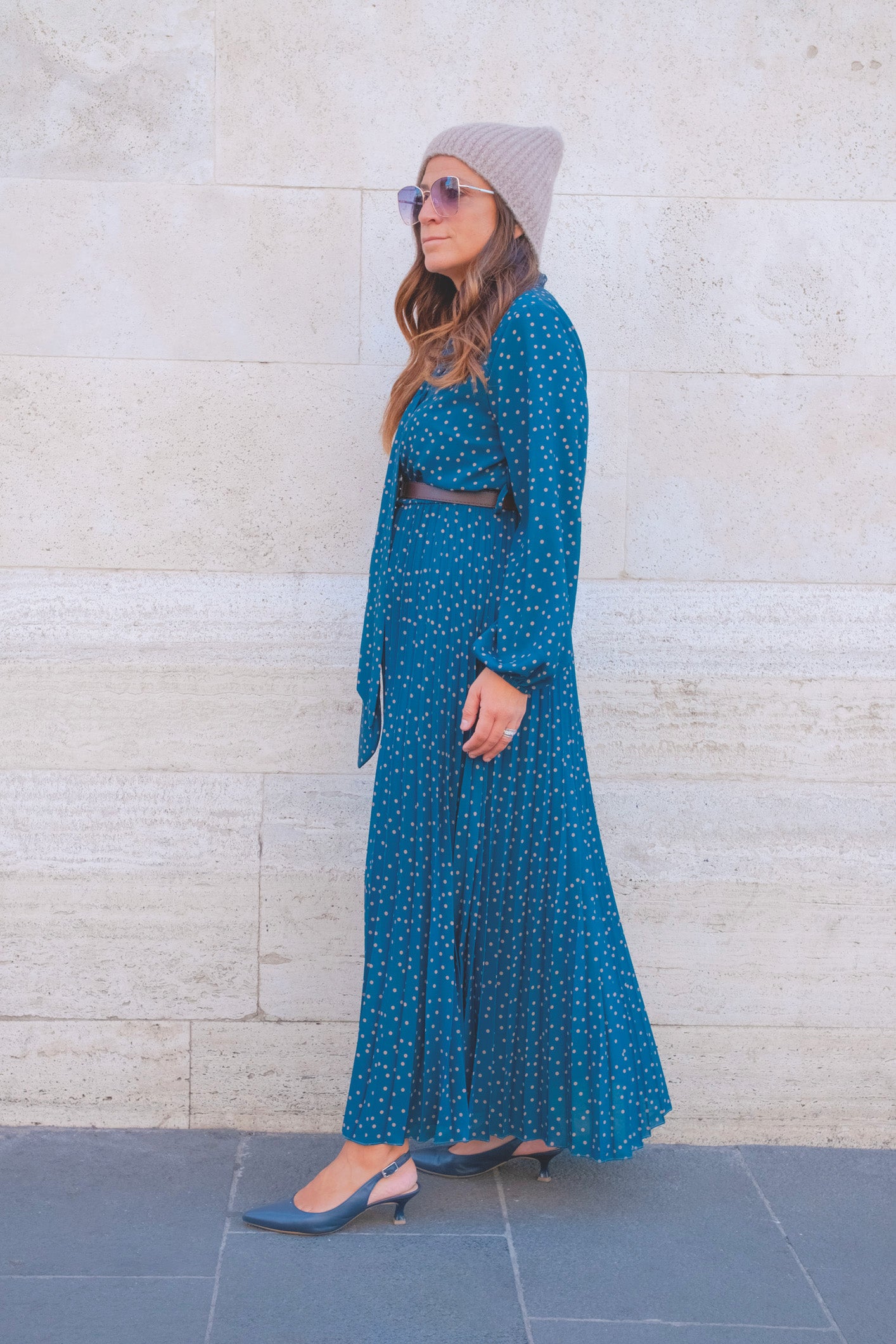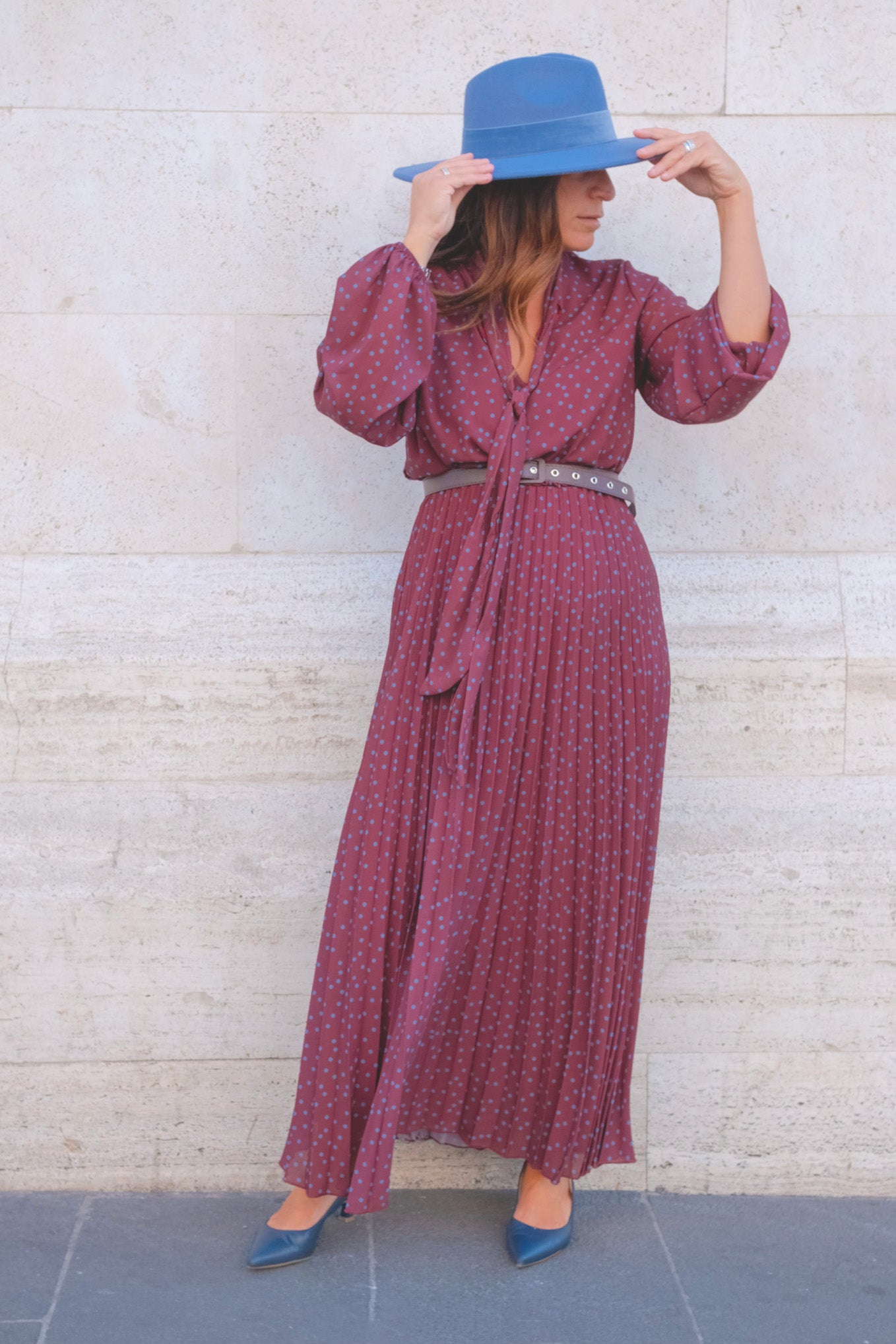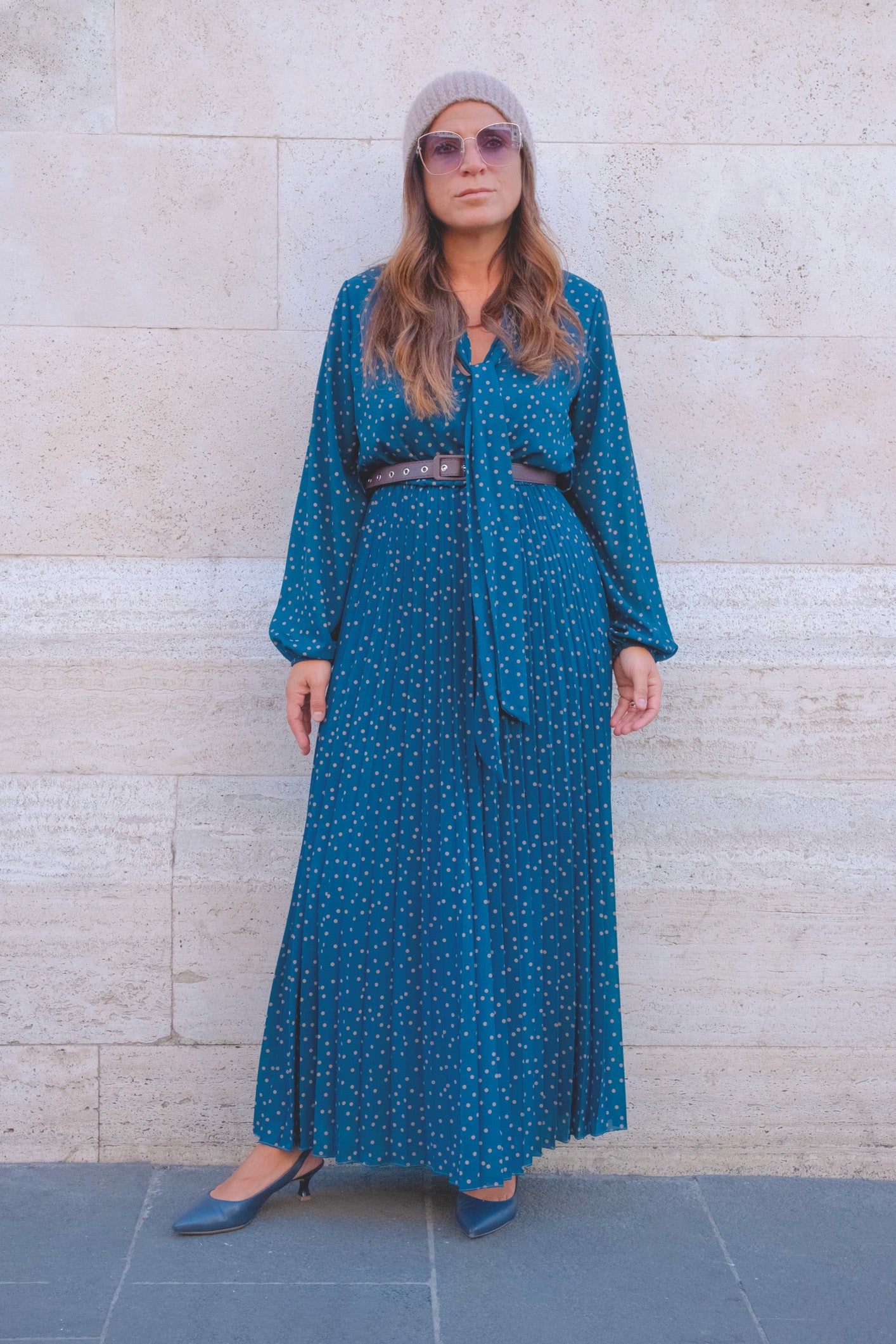 abito a pois in tulle con fiocco sul collo e cinta in vita