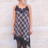 abito a quadri asimmetrico con pizzo in materiale pesante