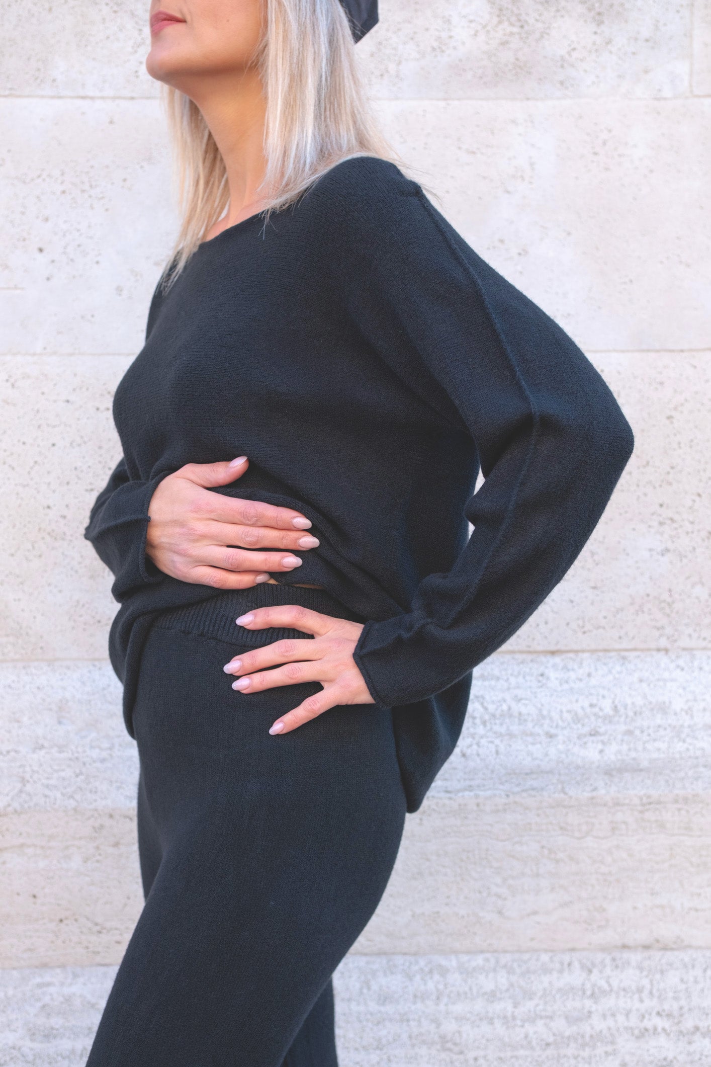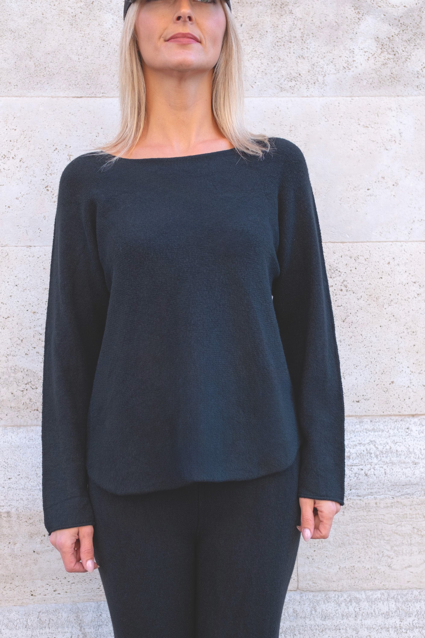 maglia in mix viscosa elastico e maglina con scollo tondo, possibile completo con pantalone