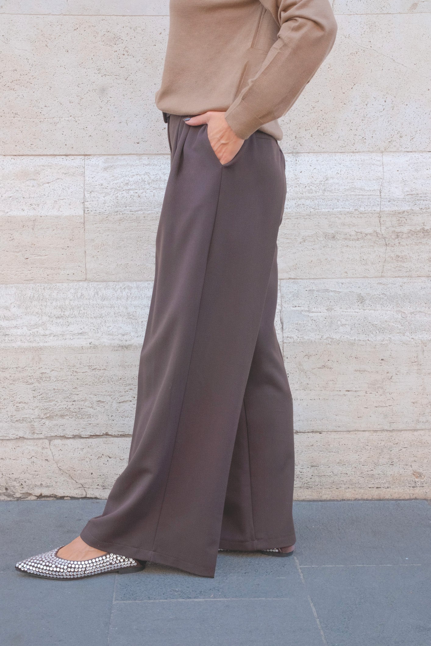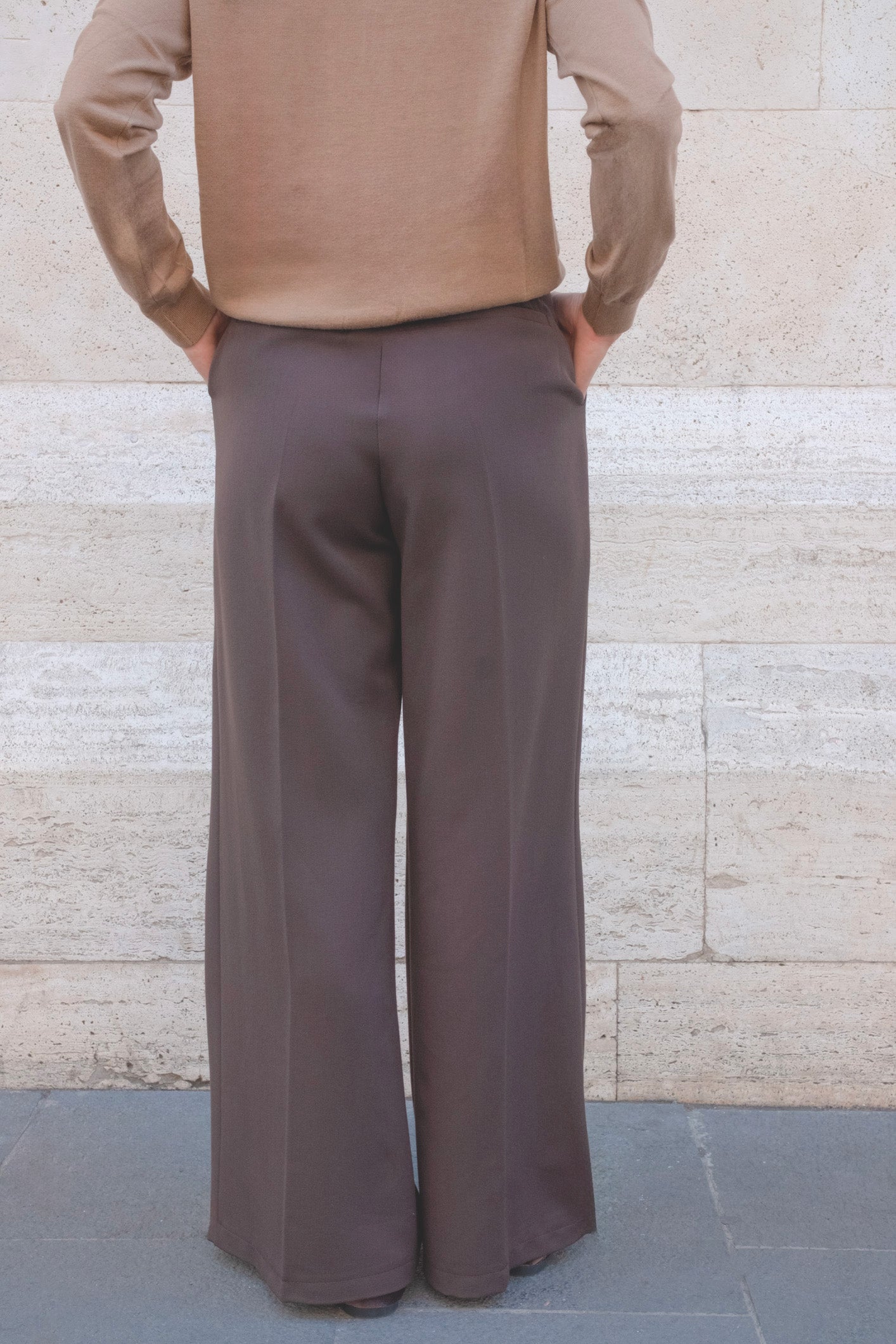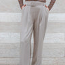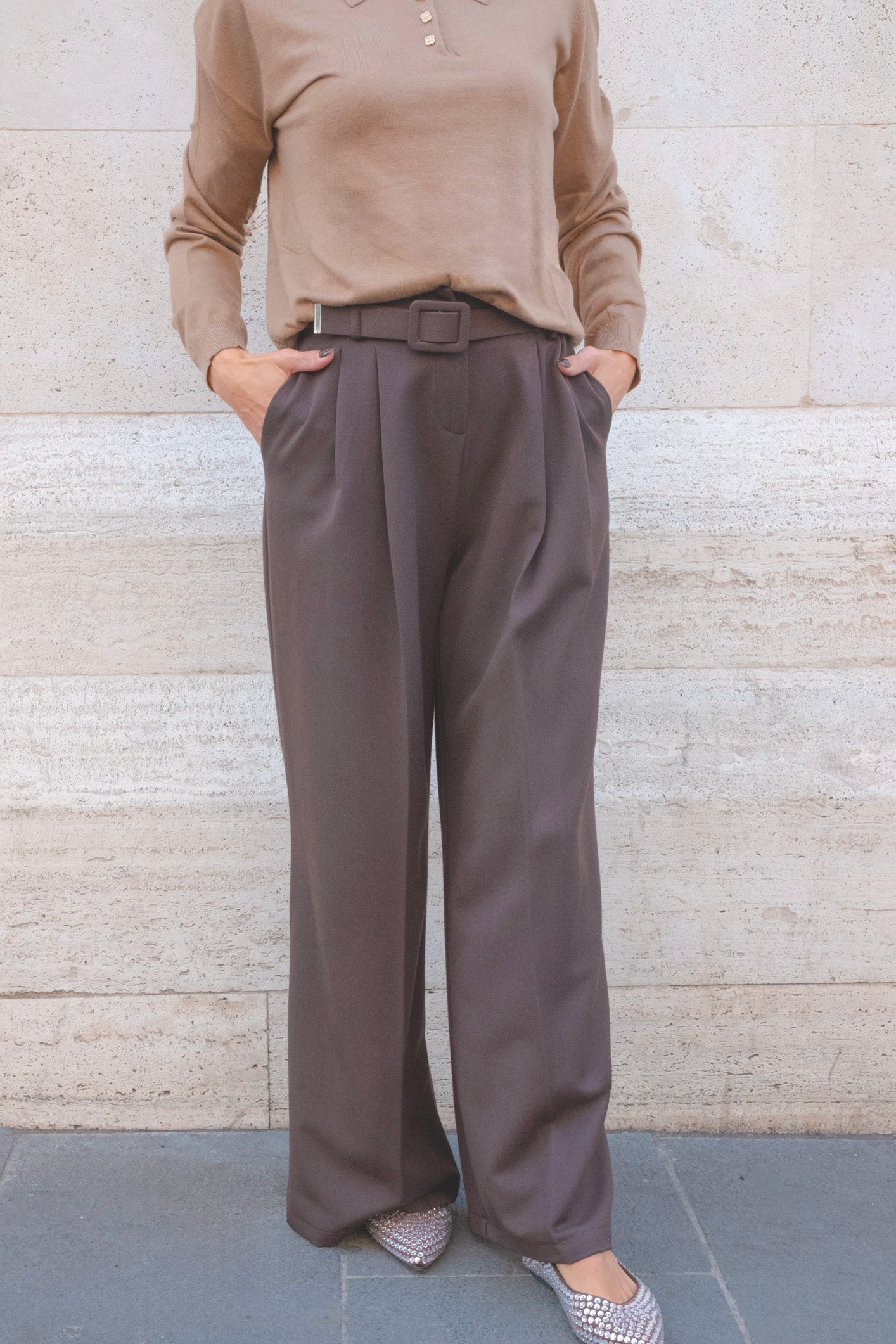 pantalone sartoriale doi completo con pence a gamba larga e cinta con fibbia