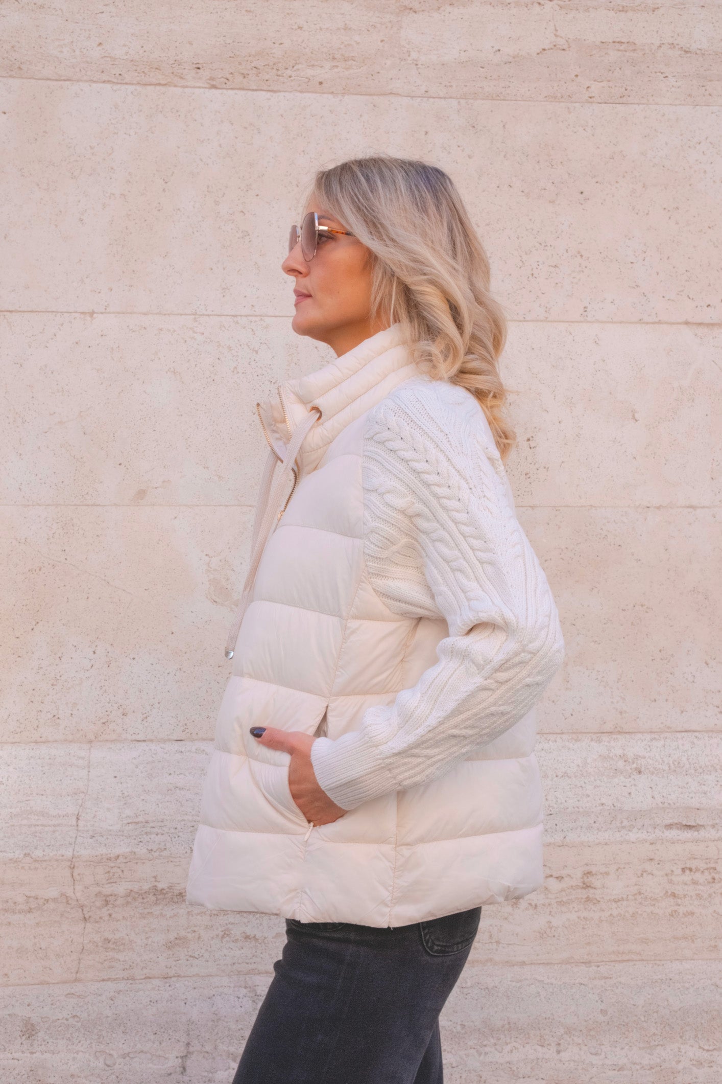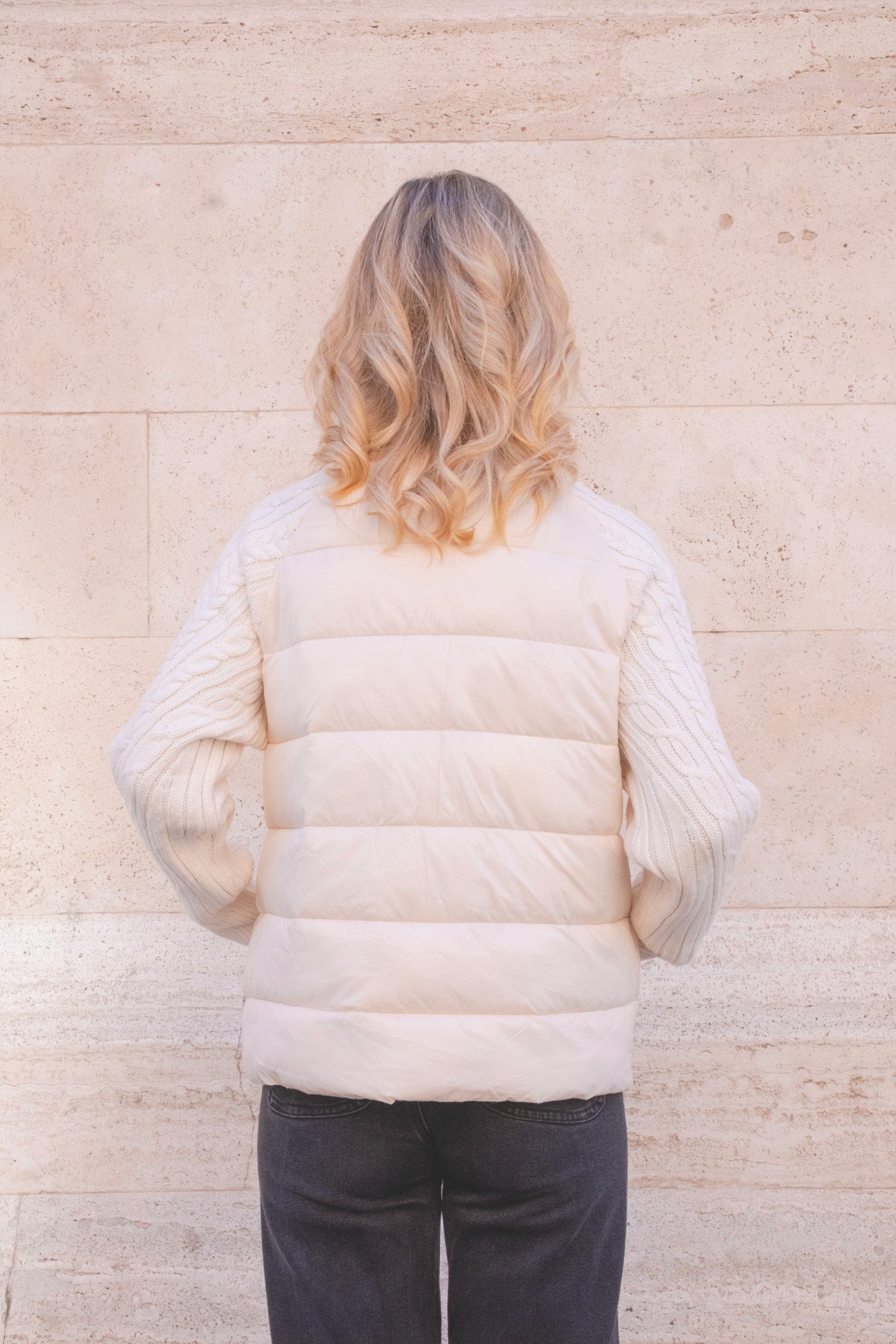 Piumino trapuntato peso medio con maniche in maglia intrecciata e cappuccio