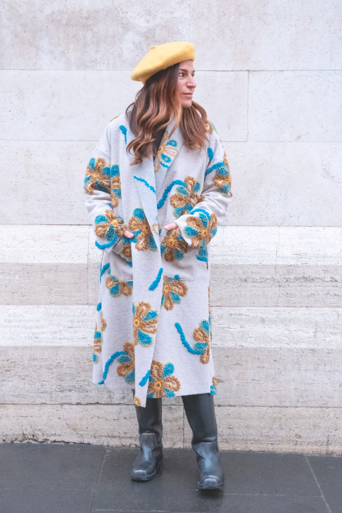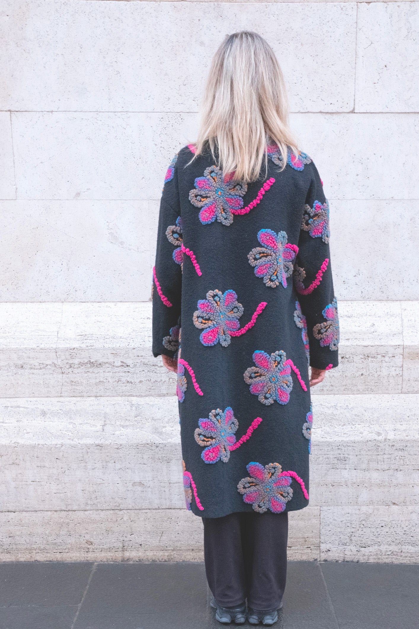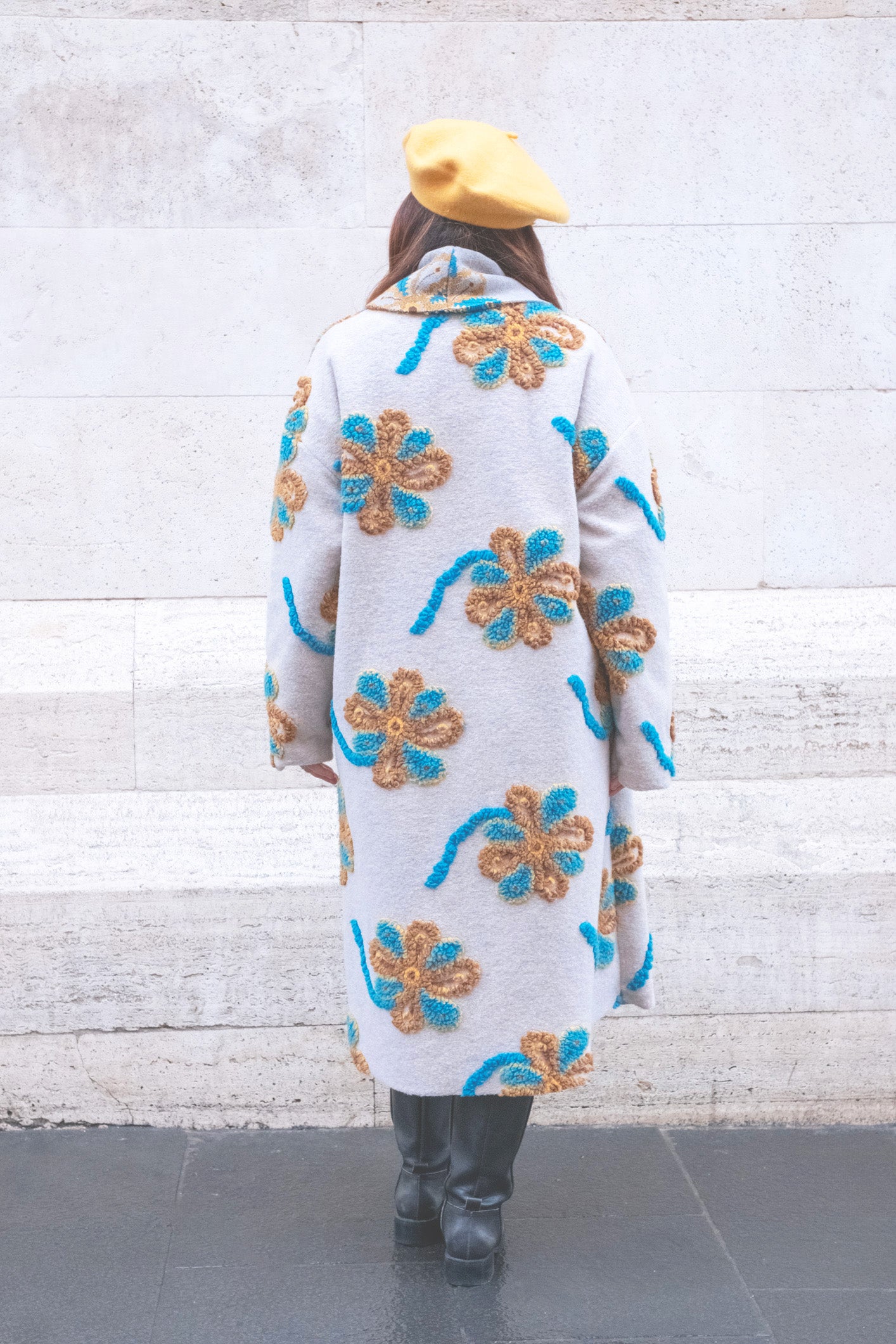 cappotto lungo over in materiale pesante e ricamato