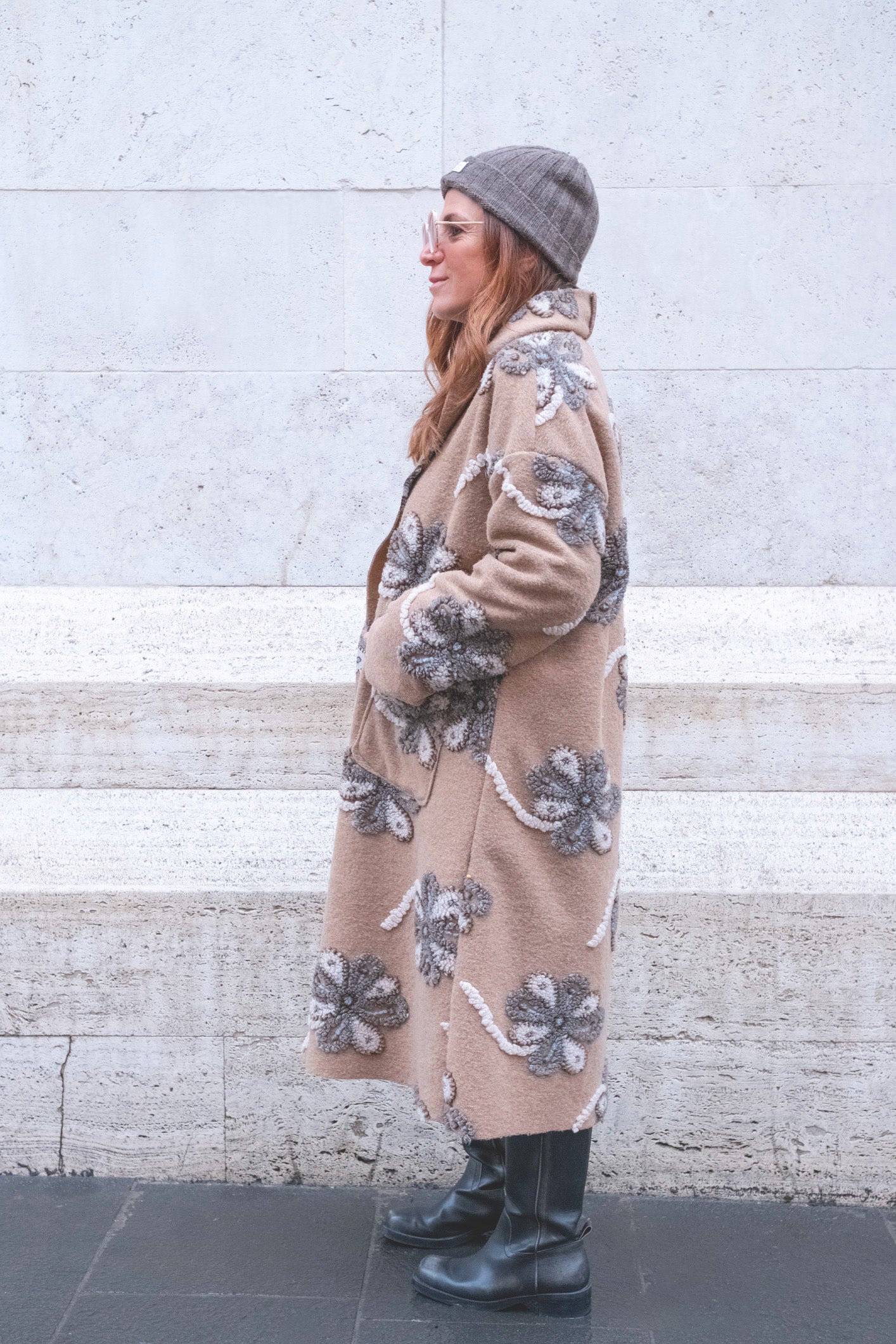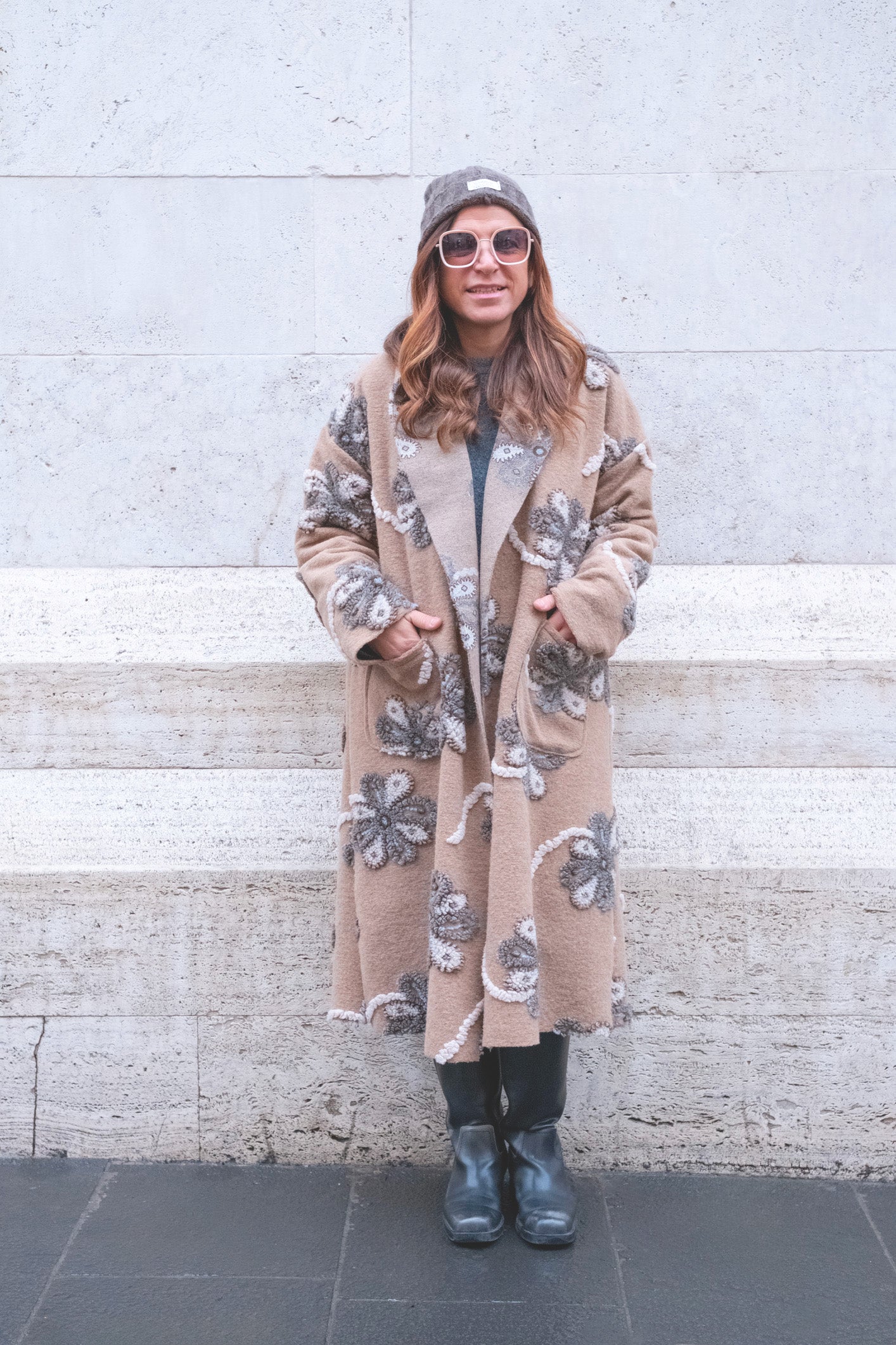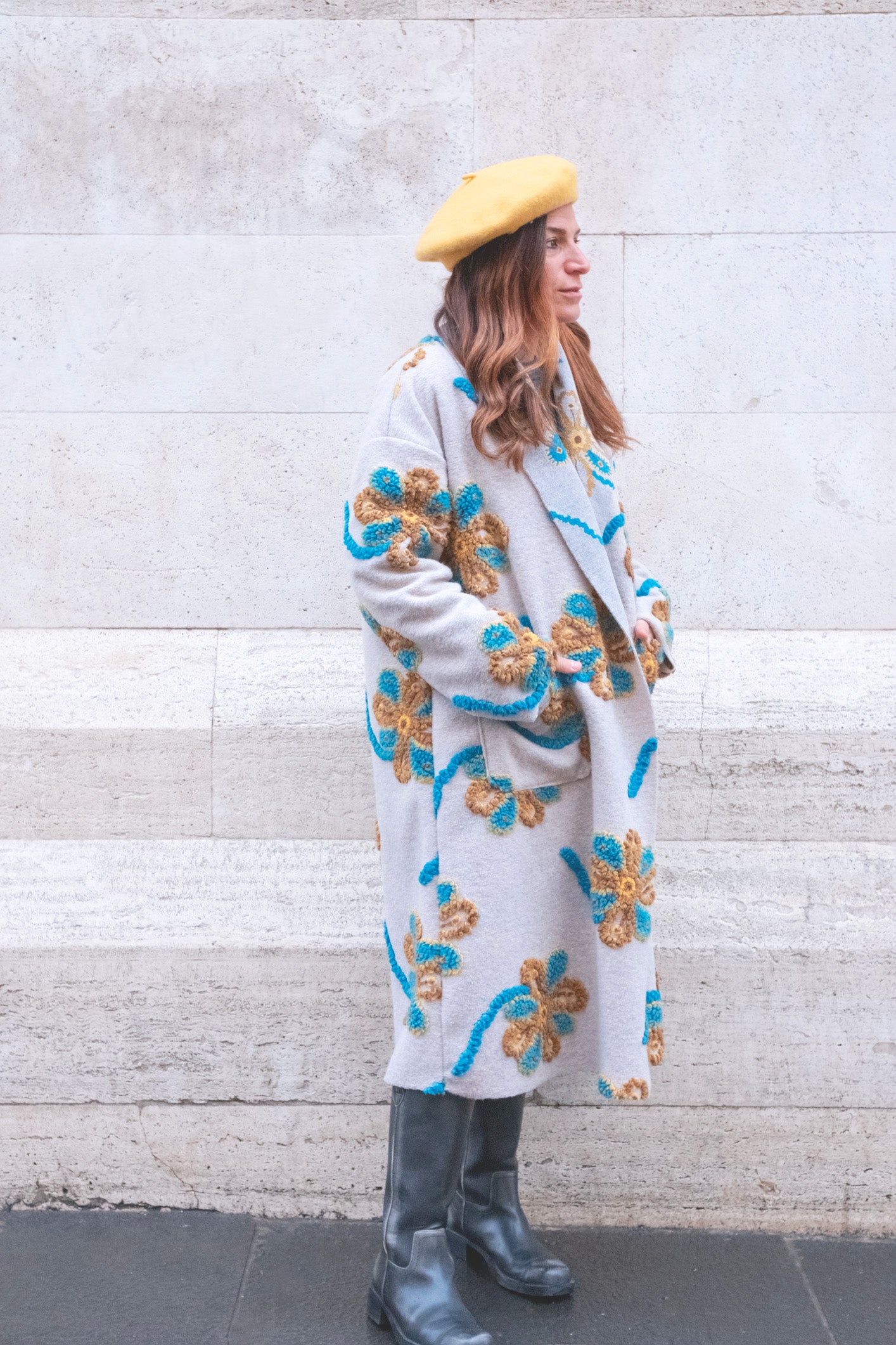 cappotto lungo over in materiale pesante e ricamato
