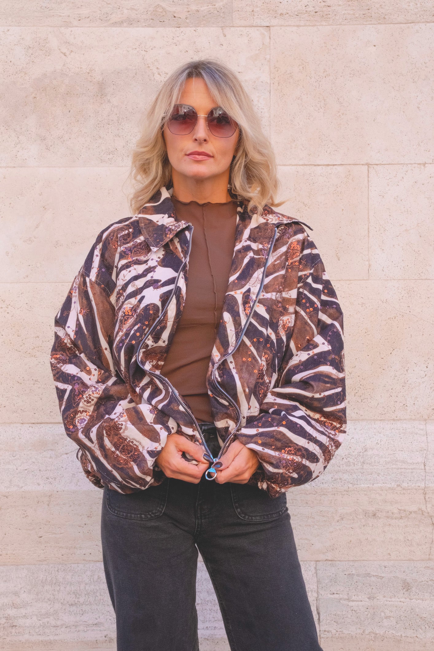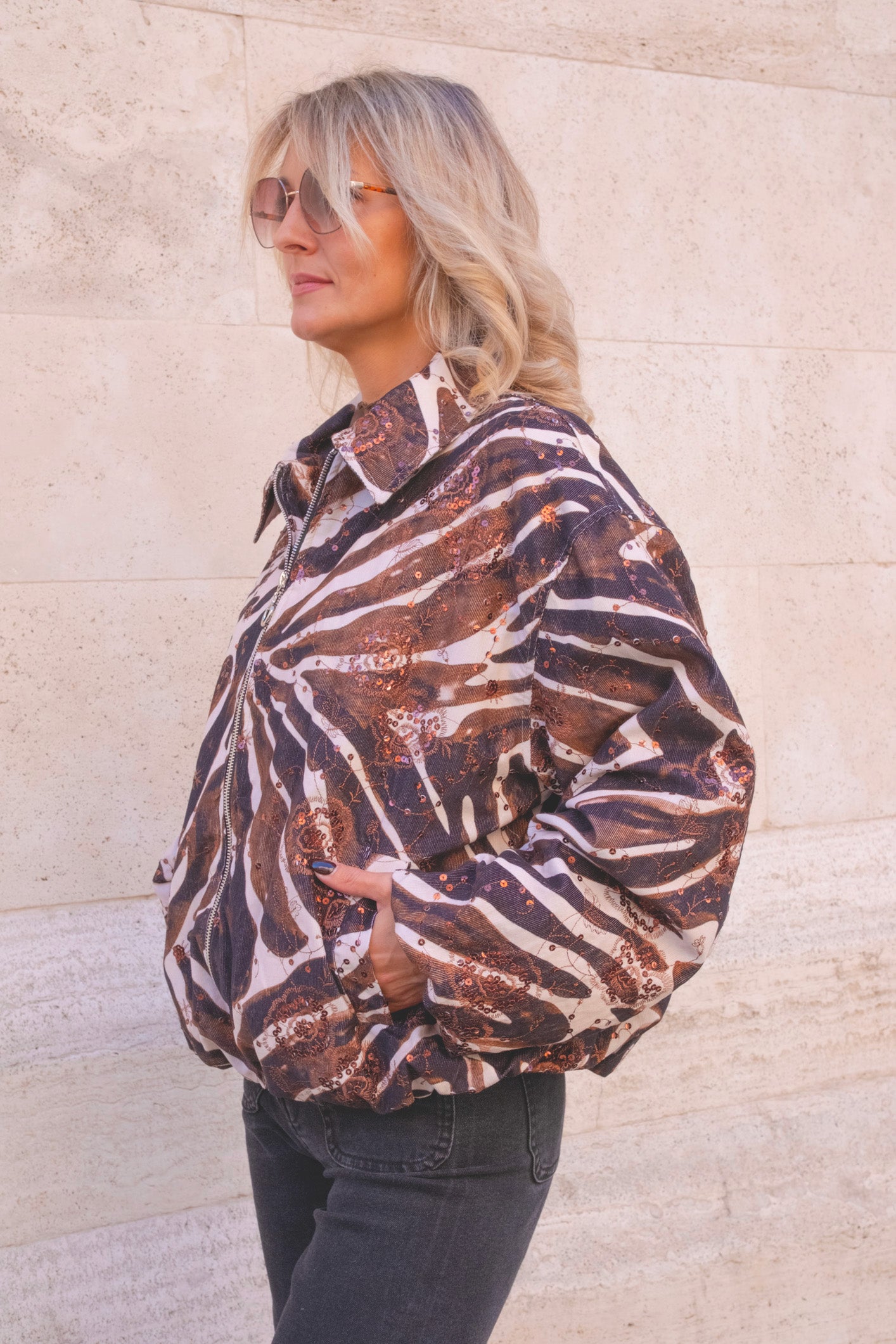 giacca a palloncino con zip e tasche