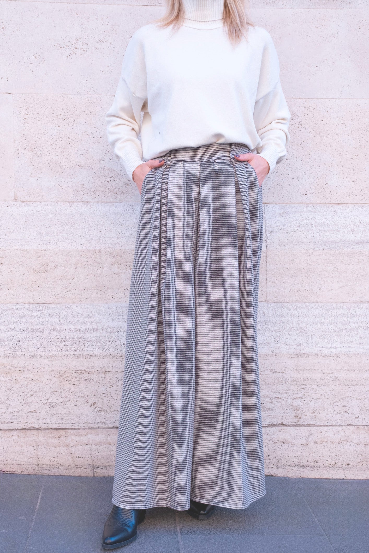 pantaloni gonna ampia concon tasche laterali e cinta in vita
