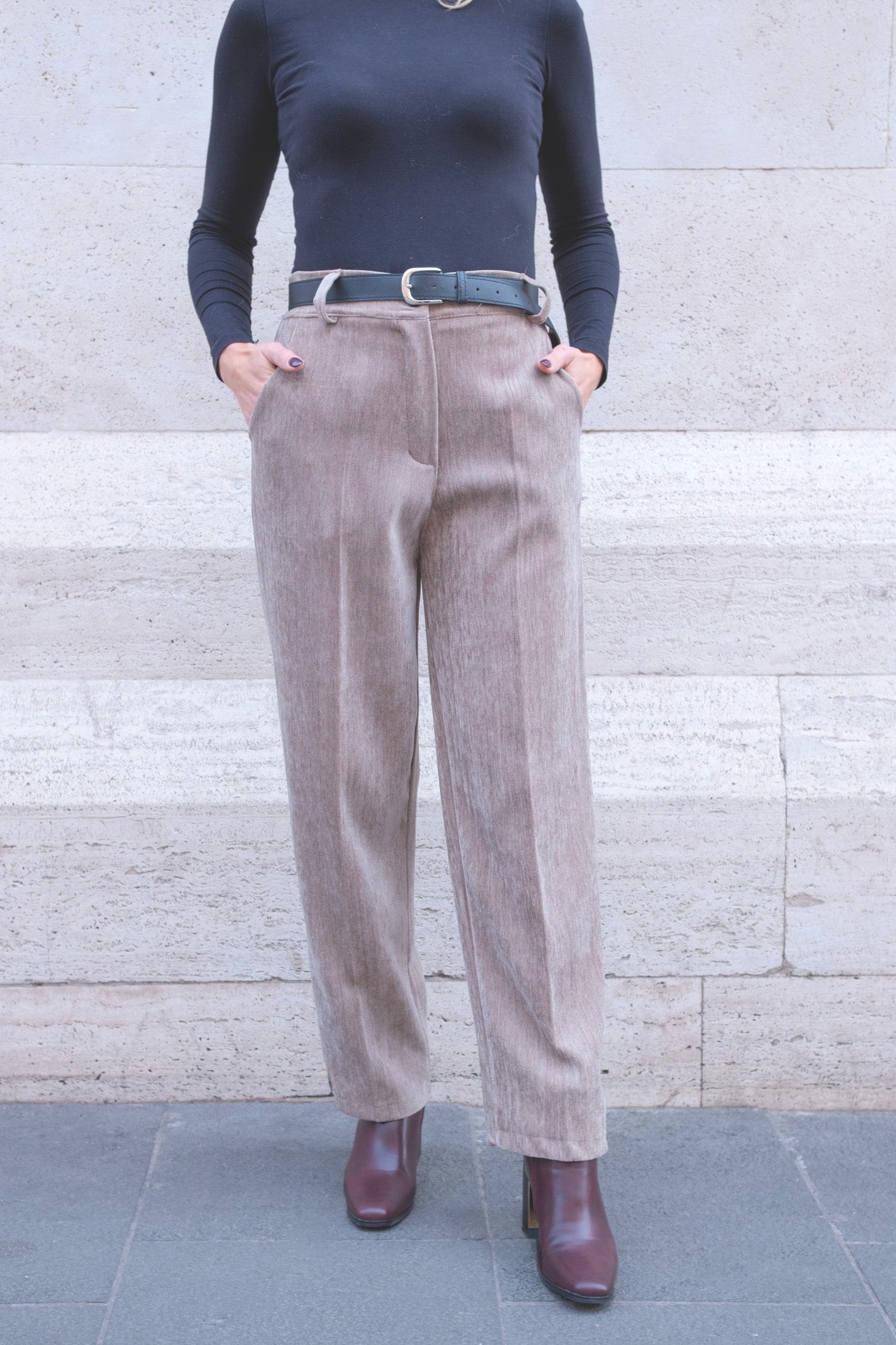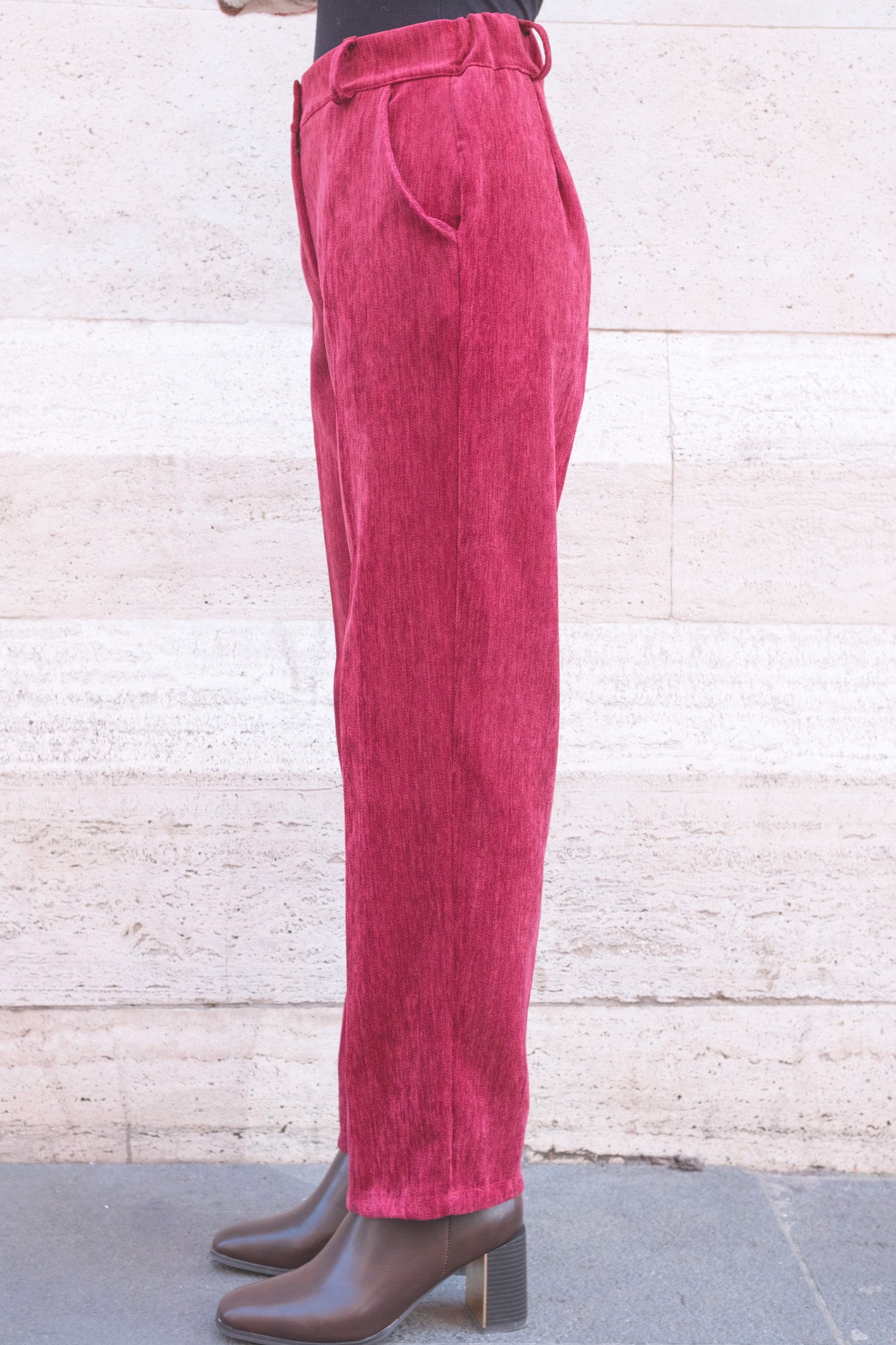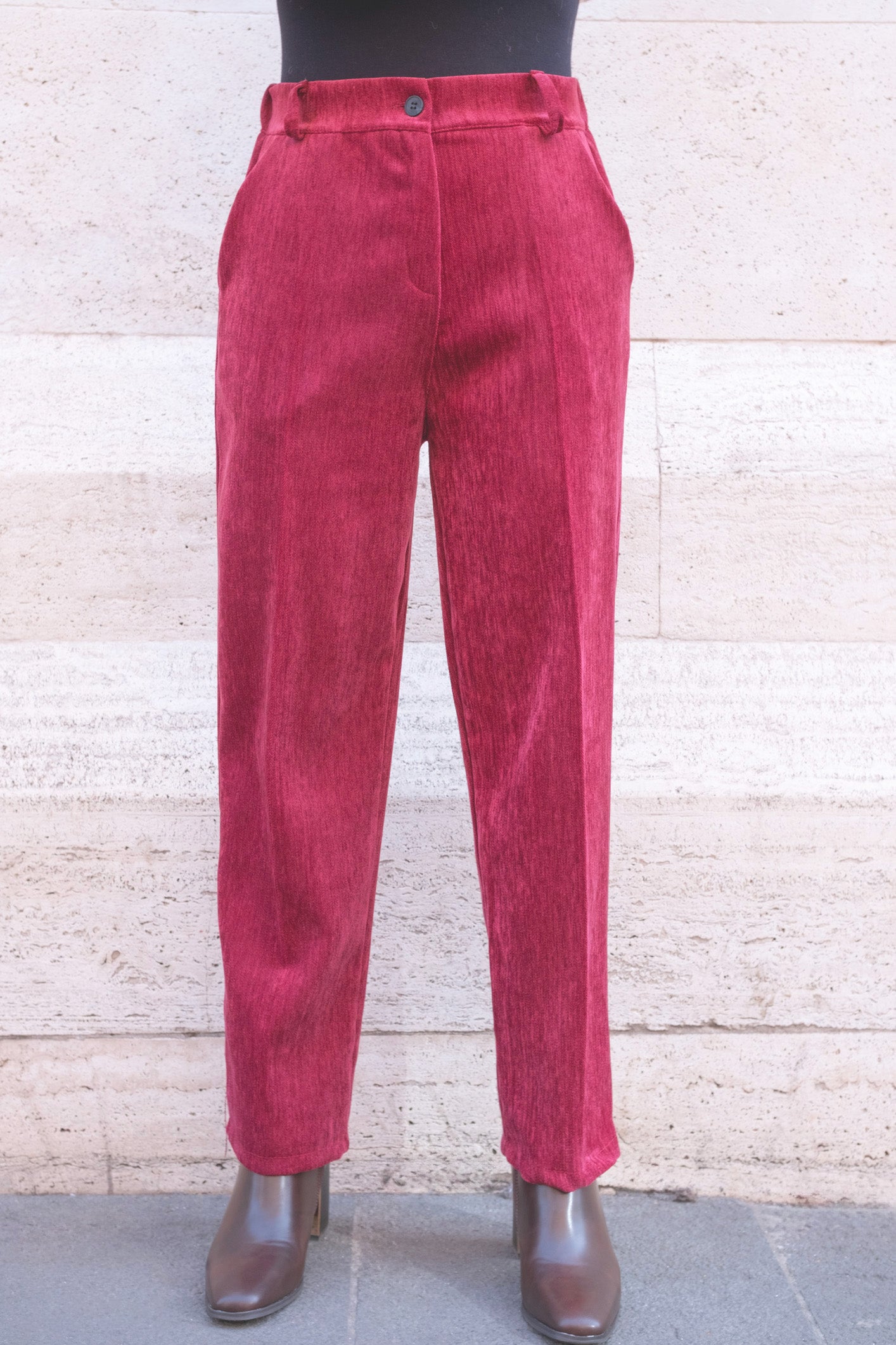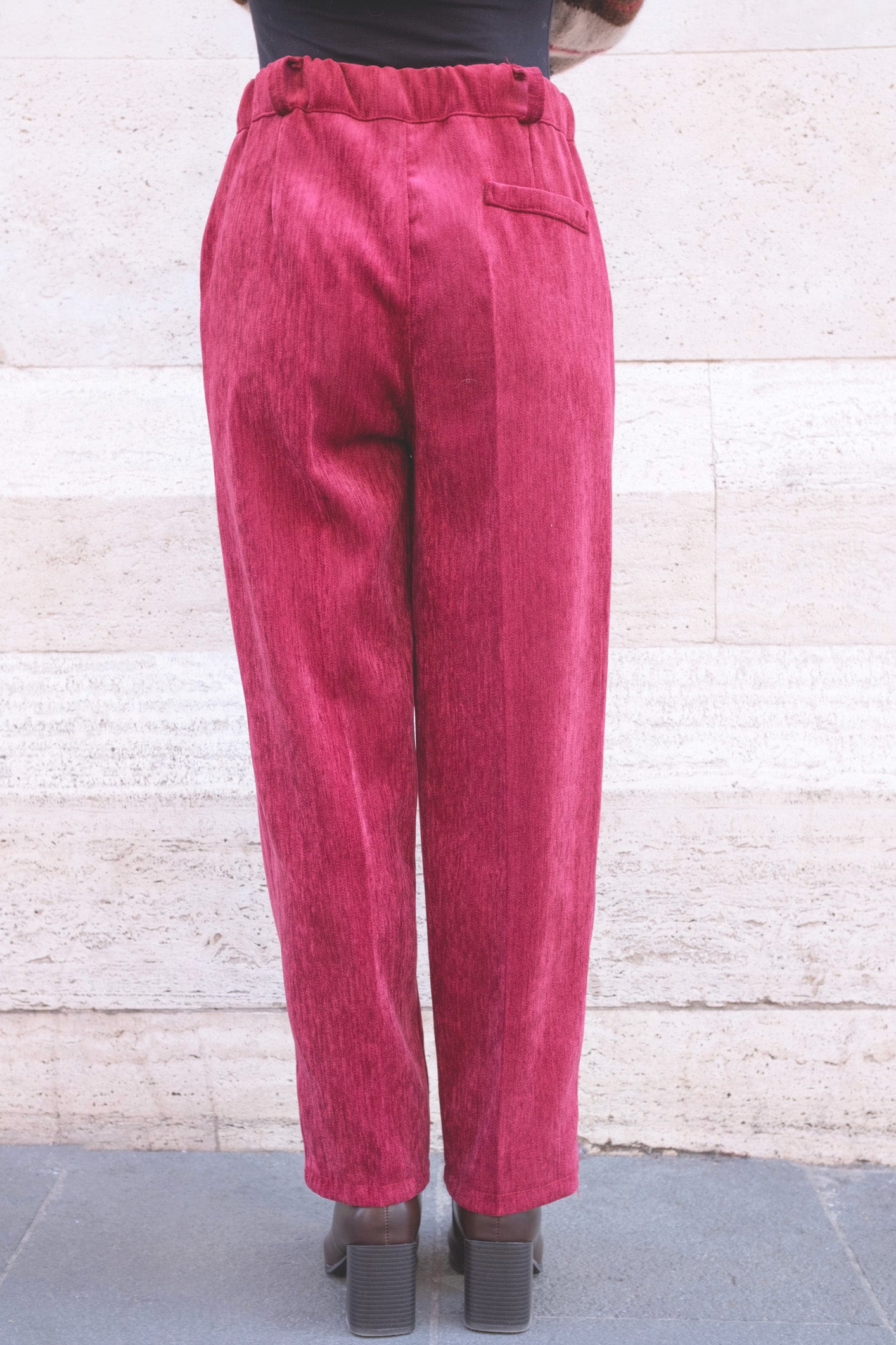 pantalone completo in materiale pesante simile a velluto con elastico in vita e passanti