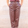pantalone a sigaretta in tessuto simil pelle color borgogna